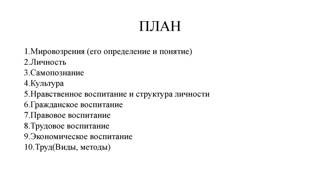 ПЛАН1.Мировозрения (его определение и понятие)