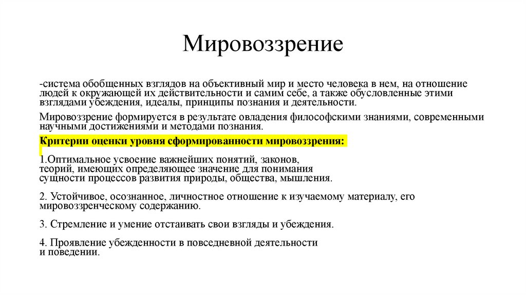 Мировоззрение-система обобщенных взглядов на объективный мир и место человека в нем, на отношение