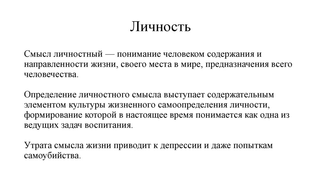 ЛичностьСмысл личностный — понимание человеком содержания и
