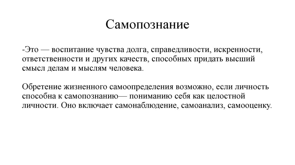 Самопознание-Это — воспитание чувства долга, справедливости, искренности,