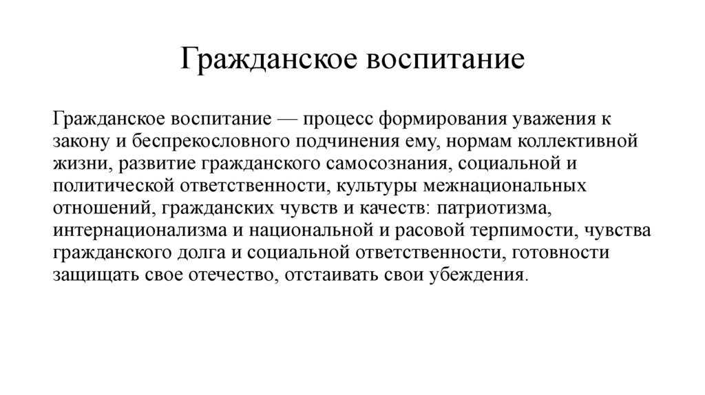 Гражданское воспитаниеГражданское воспитание — процесс формирования уважения к