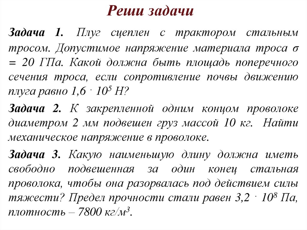 Задача 1. Плуг сцеплен с трактором стальнымтросом. Допустимое напряжение материала троса σ