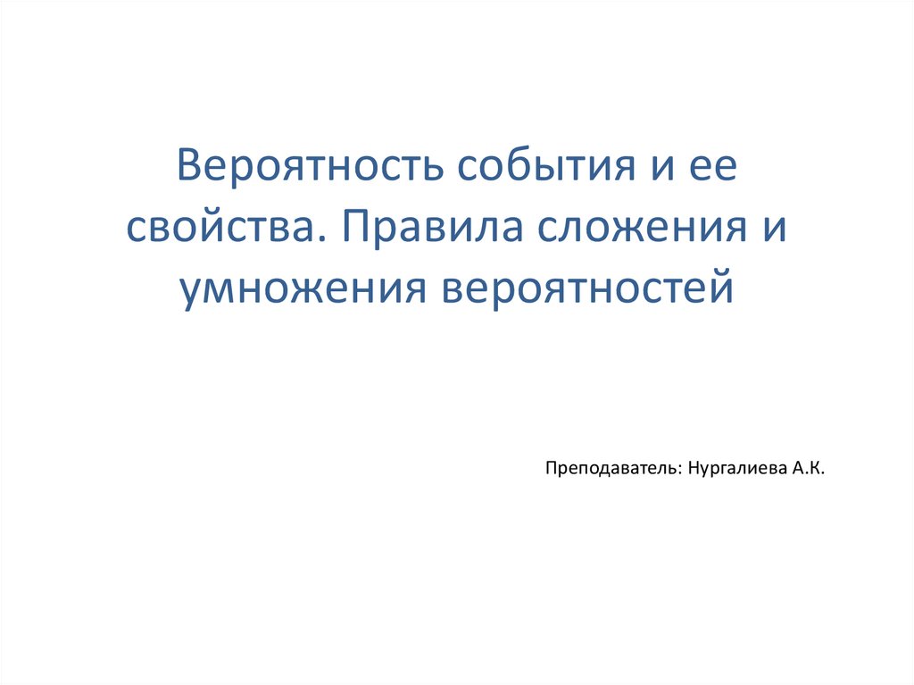 Вероятность события и ее свойства. Правила сложения и умножения вероятностей