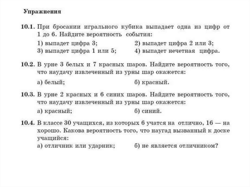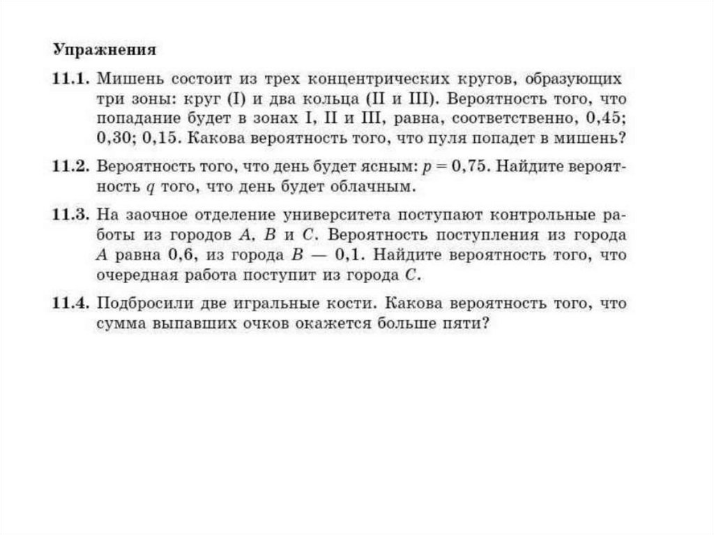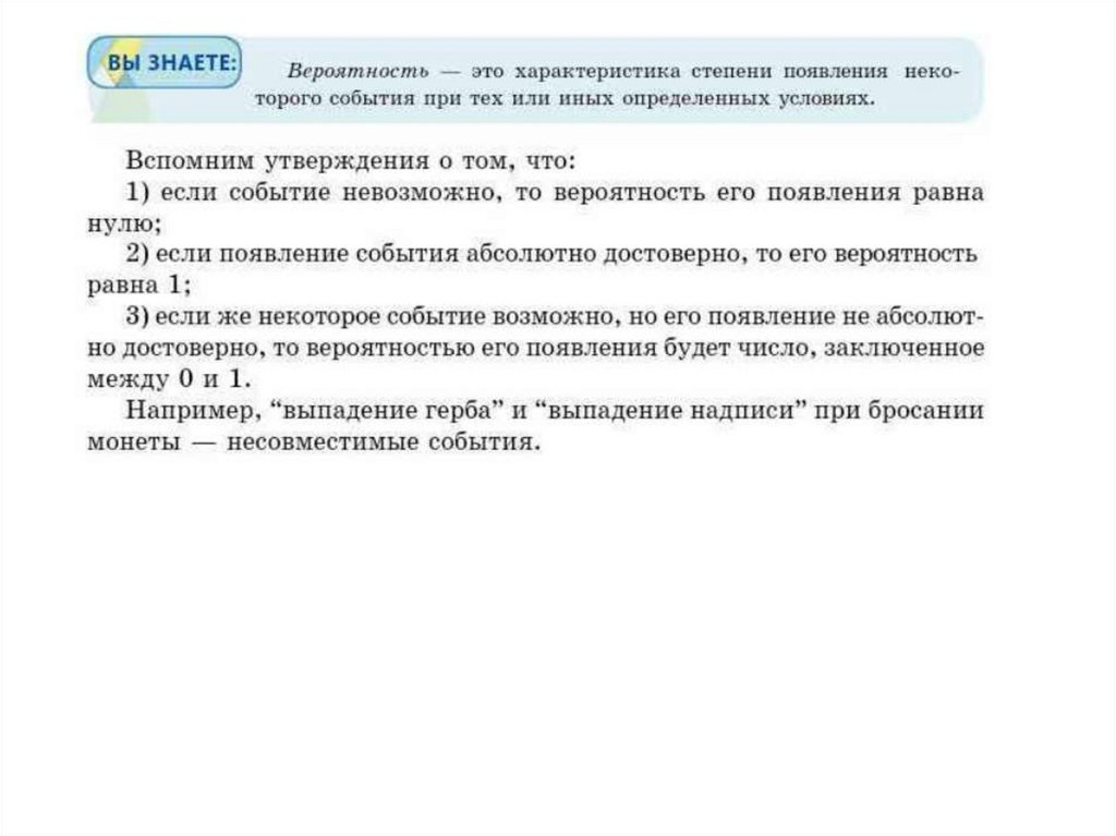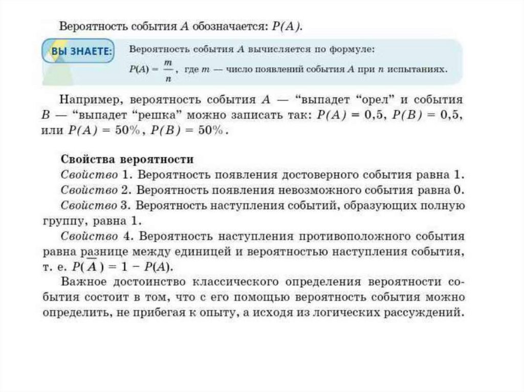 Вероятность событий. Свойства вероятностей