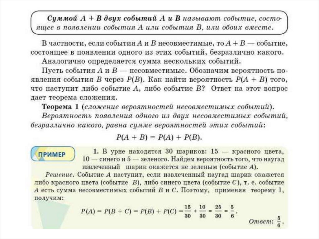 Вероятность события. Сложение вероятностей