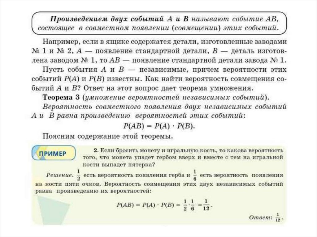 Событие, вероятность события. Сложение и умножение вероятностей. Понятие о независимости событий