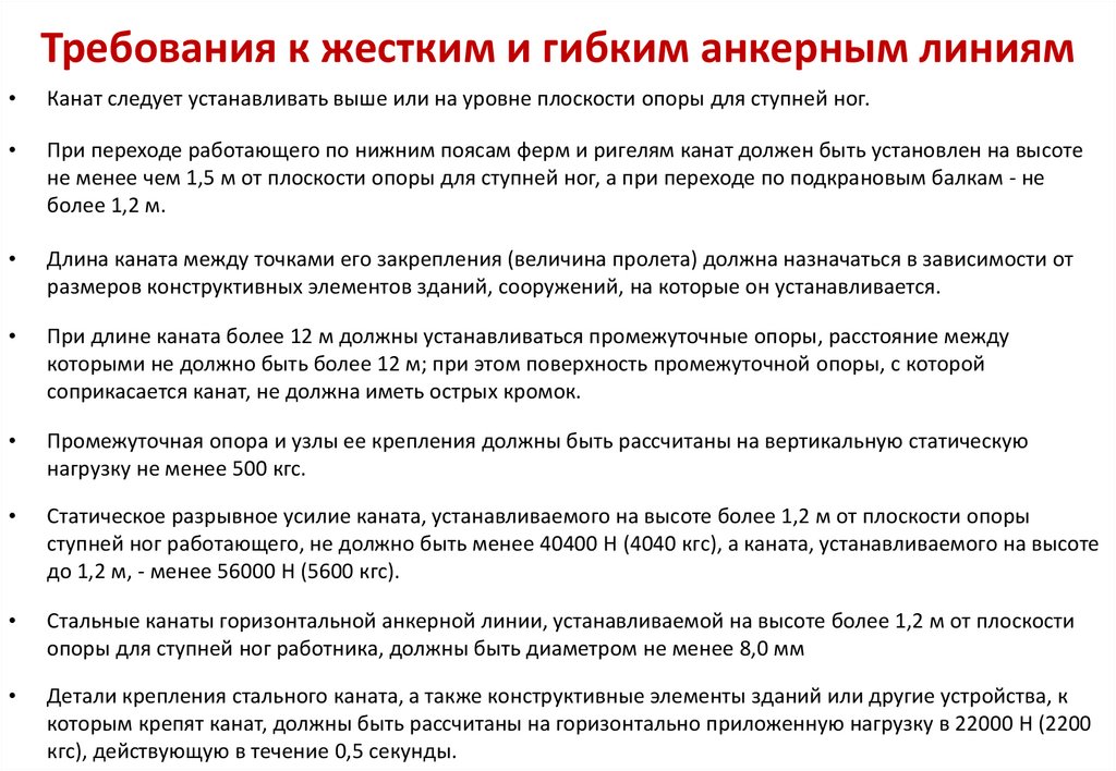 Требования к жестким и гибким анкерным линиямКанат следует устанавливать выше или на уровне плоскости опоры для ступней ног.