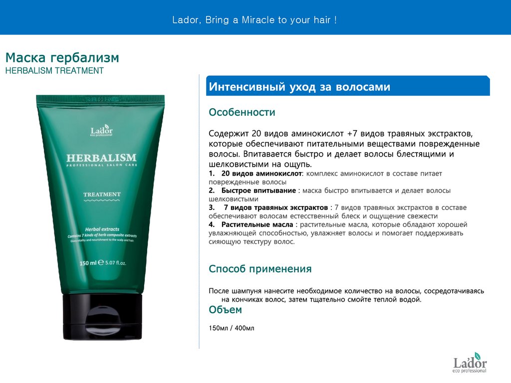 Интенсивный уход за волосами. Lador