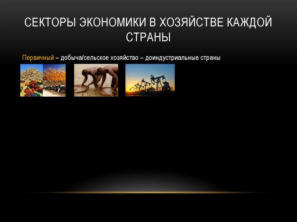 Первичный – добыча/сельское хозяйство – доиндустриальные страны