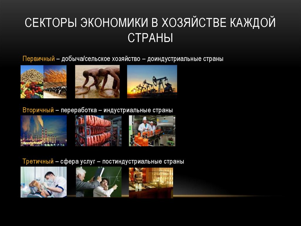 СЕКТОРЫ ЭКОНОМИКИ В ХОЗЯЙСТВЕ КАЖДОЙСТРАНЫ