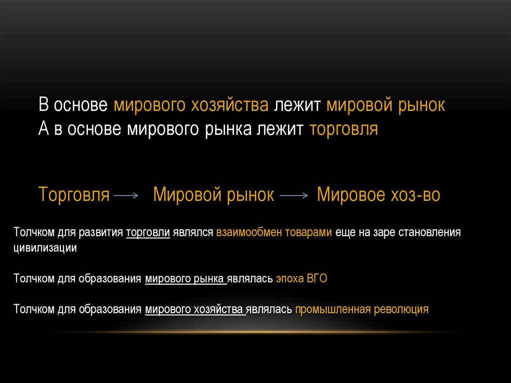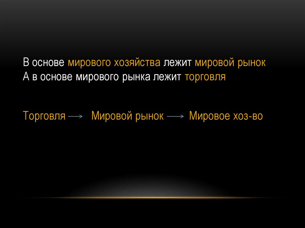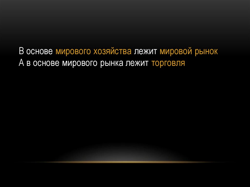 В основе мирового хозяйства лежит мировой рынокА в основе мирового рынка лежит торговля