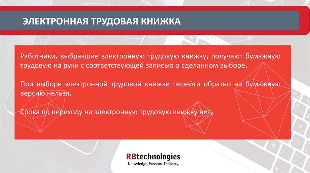 ЭЛЕКТРОННАЯ ТРУДОВАЯ КНИЖКАРаботники, выбравшие электронную трудовую книжку, получают бумажную