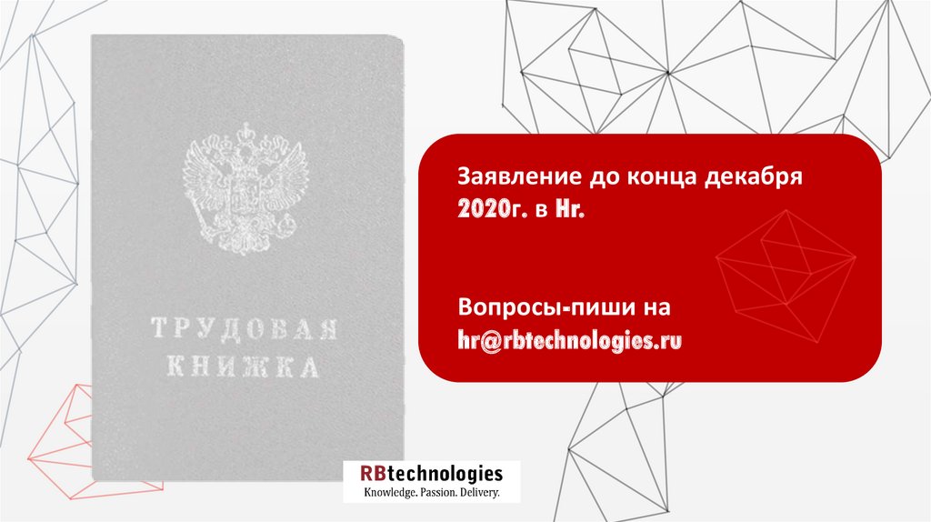 Заявление до конца декабря2020г. в Hr.