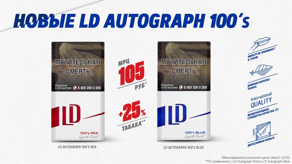 *Максимальная розничная цена (Август 2020)**По сравнению с LD Autograph Red и LD Autograph Blue