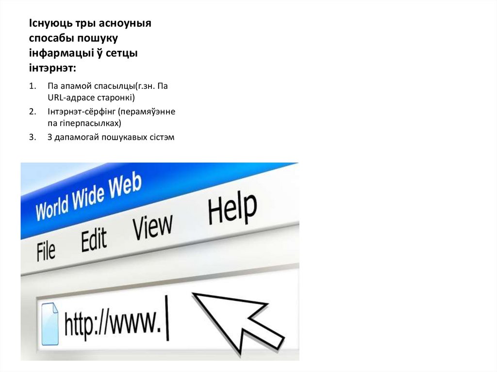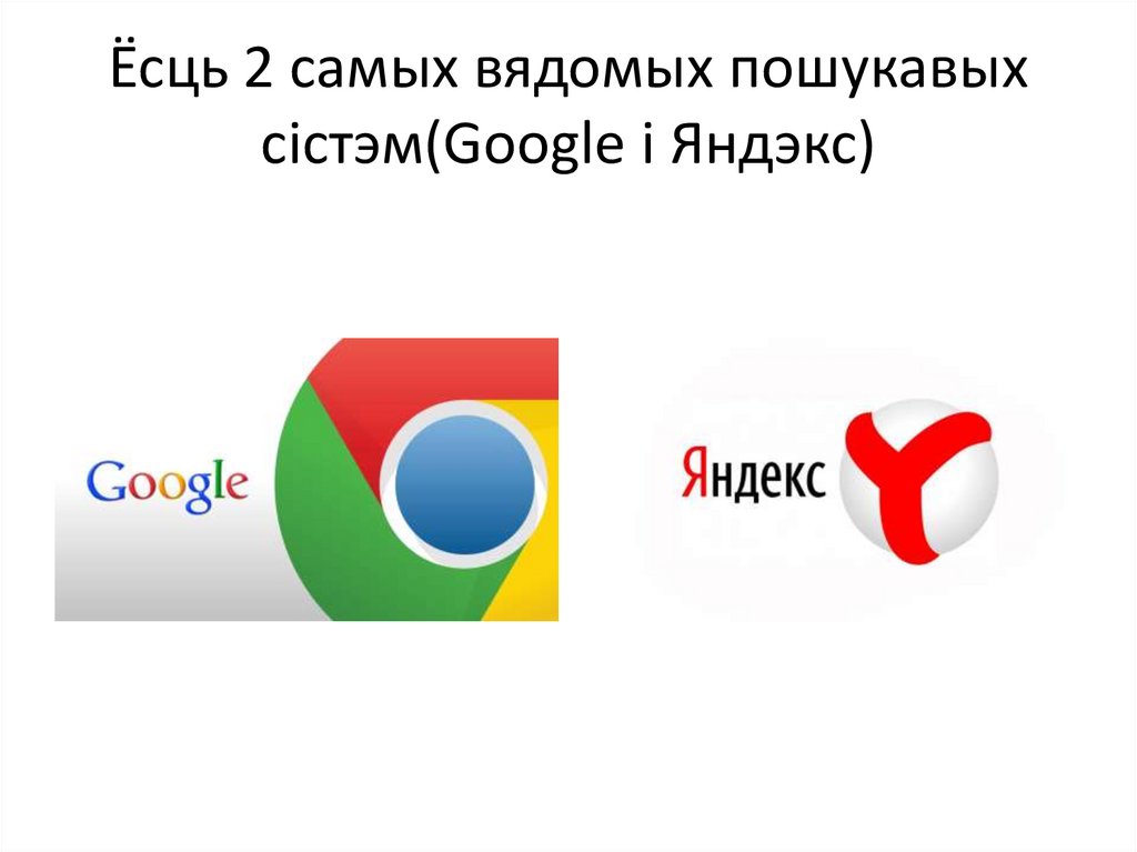 Ёсць 2 самых вядомых пошукавыхсістэм(Google і Яндэкс)