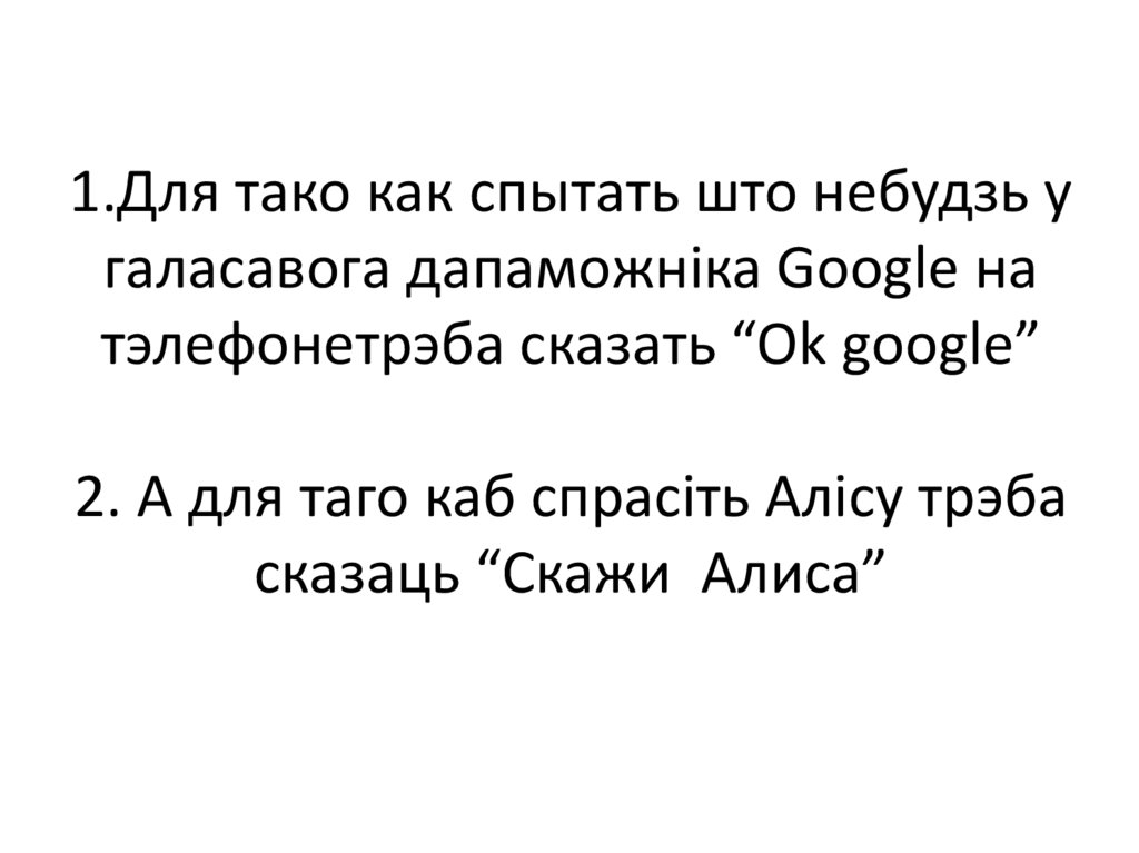 1.Для тако как спытать што небудзь угаласавога дапаможніка Google на