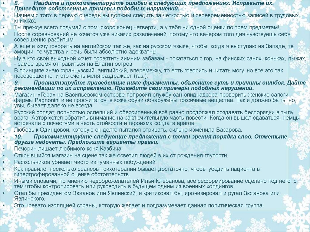 Упражнения на нахождение нарушений норм разных уровней языка