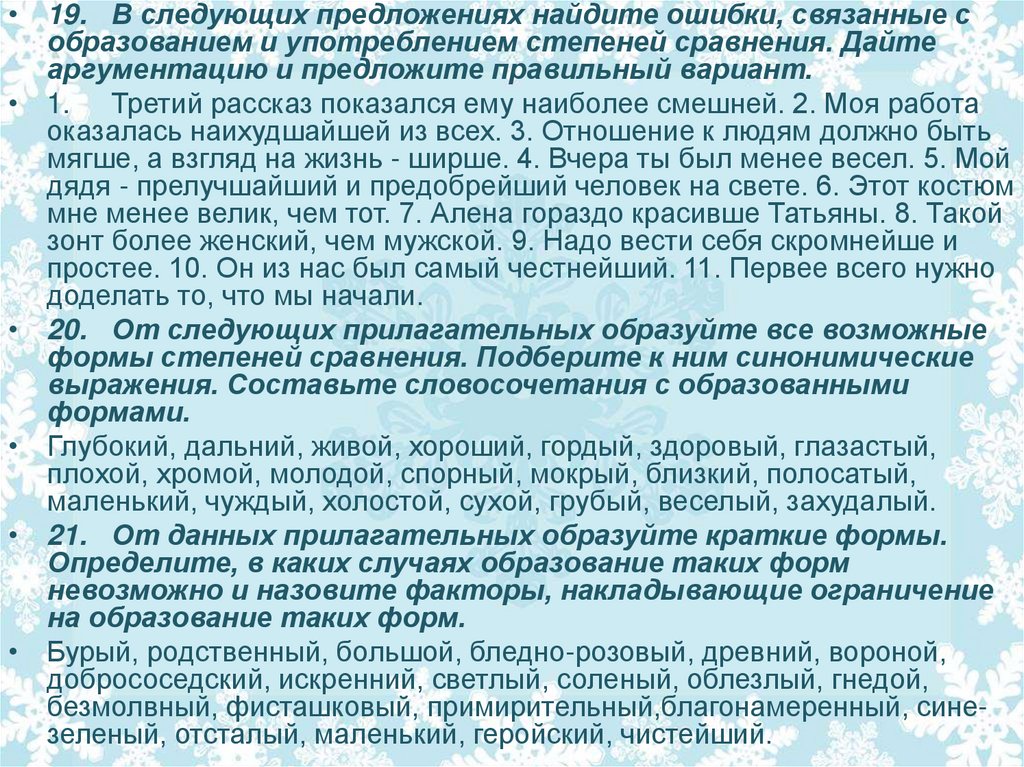 • 21. От данных прилагательных образуйте краткие формы.