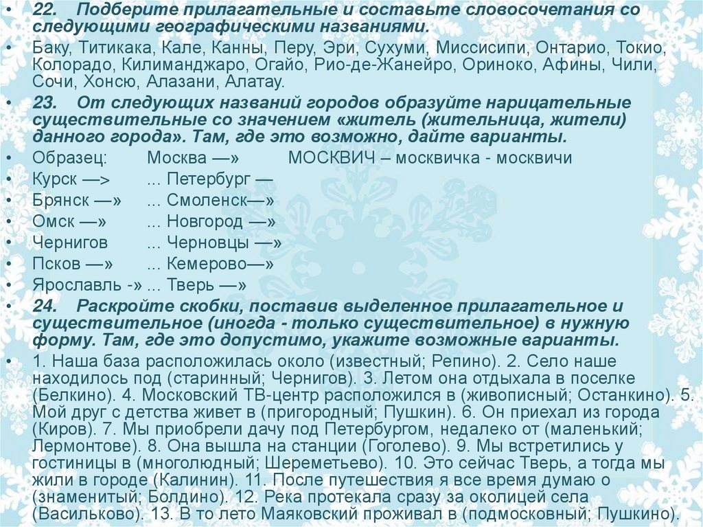 данного города». Там, где это возможно, дайте варианты.