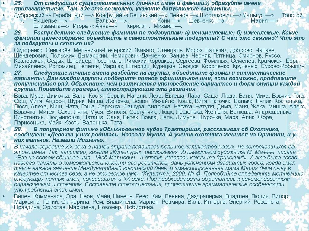 От следующих существительных (личных имен и фамилий) образуйте имена