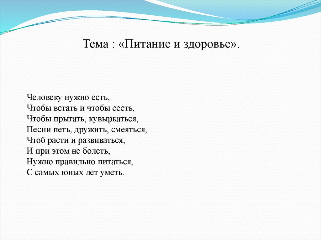 Тема : «Питание и здоровье».Человеку нужно есть,