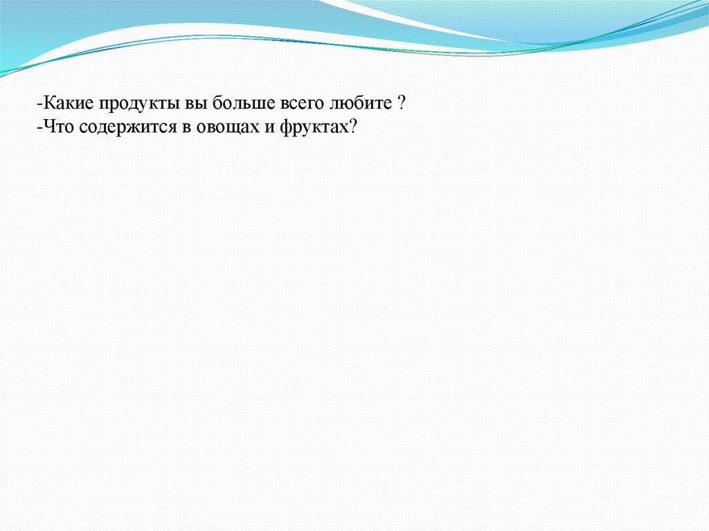 -Какие продукты вы больше всего любите ?-Что содержится в овощах и фруктах?