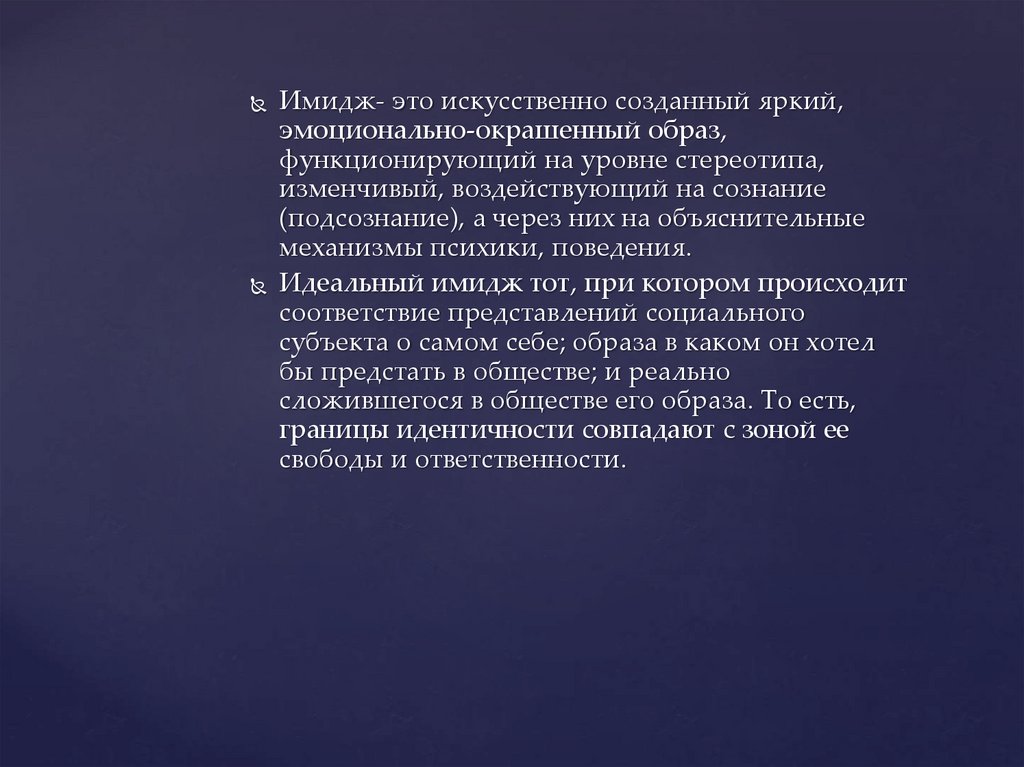 Имидж- это искусственно созданный яркий,эмоционально-окрашенный образ,