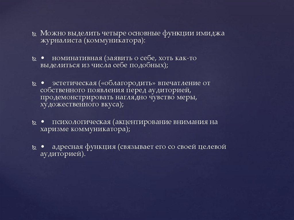 Можно выделить четыре основные функции имиджажурналиста (коммуникатора):