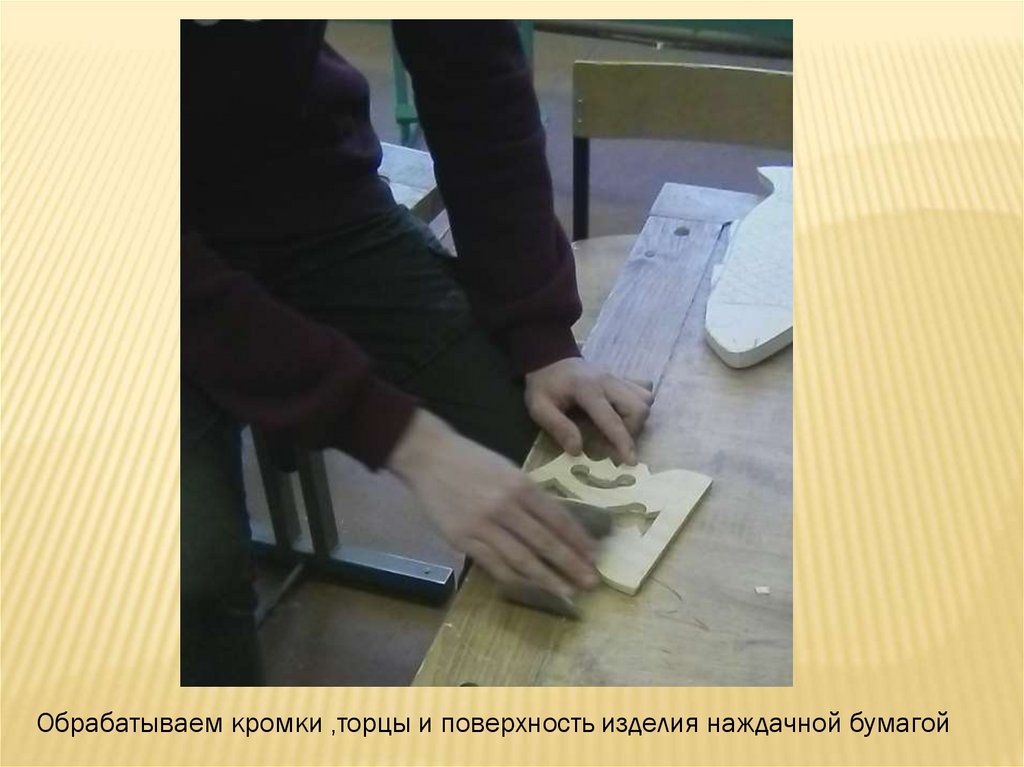 Обрабатываем кромки ,торцы и поверхность изделия наждачной бумагой18.