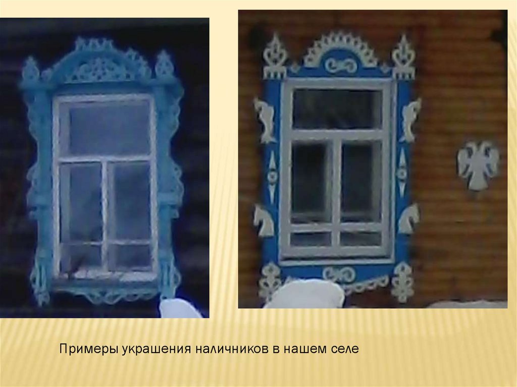 Примеры украшения наличников в нашем селе10.