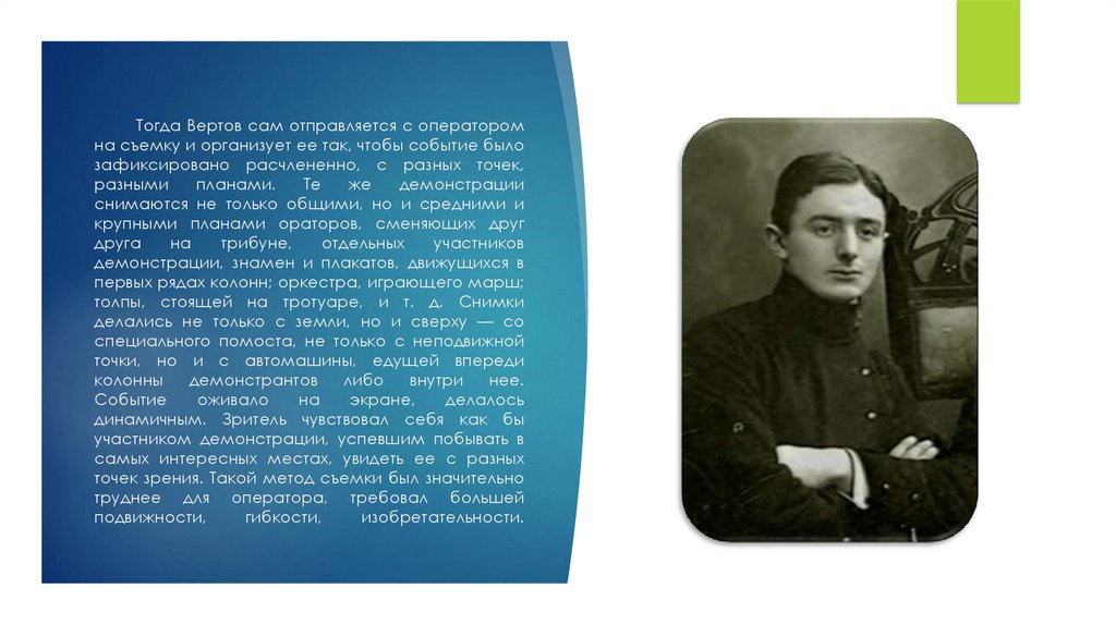 Дзиги Вертова. Он был новатором как в