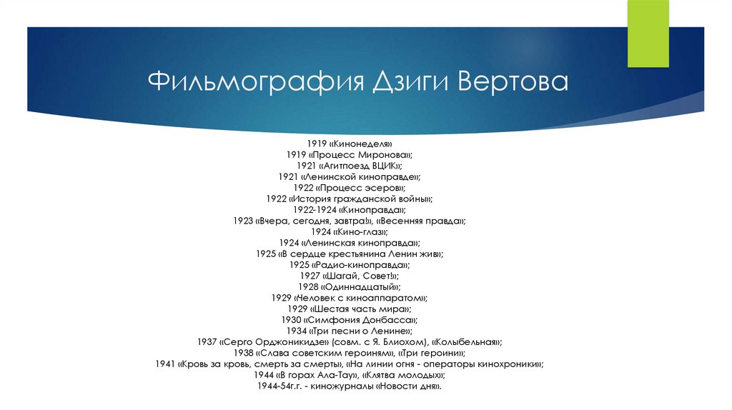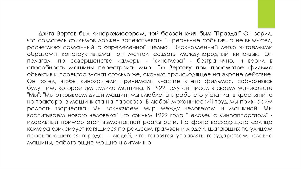 Дзиги Вертова документальное кино являлось