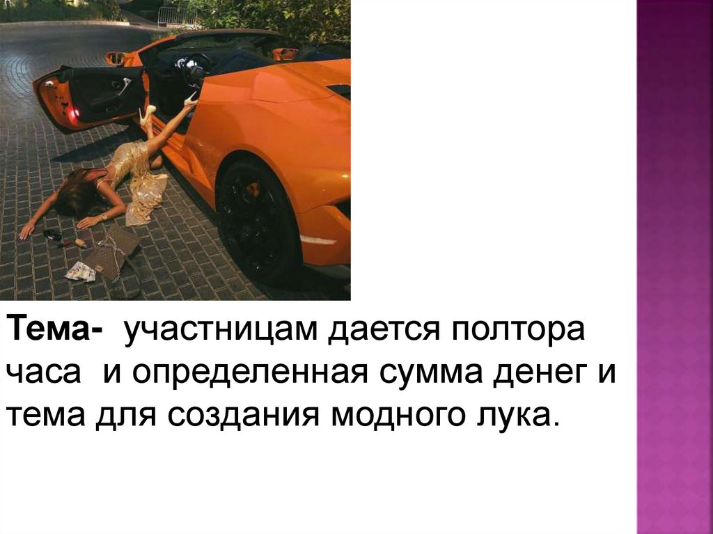 Тема- участницам дается полторачаса и определенная сумма денег и