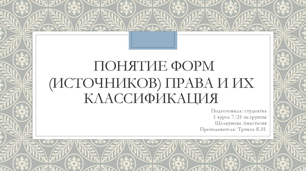 ПОНЯТИЕ ФОРМ(ИСТОЧНИКОВ) ПРАВА И ИХ