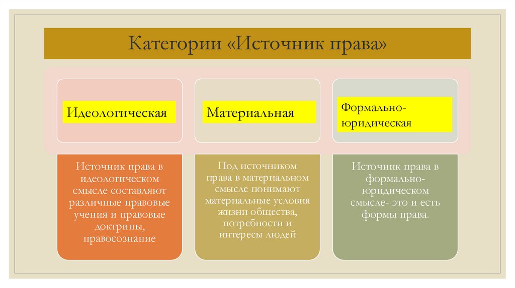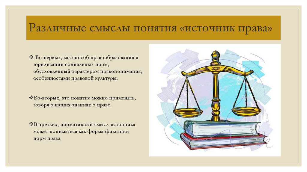 Различные смыслы понятия «источник права»Во-первых, как способ правообразования и