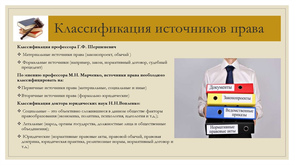 По мнению профессора М.Н. Марченко, источники права необходимо
