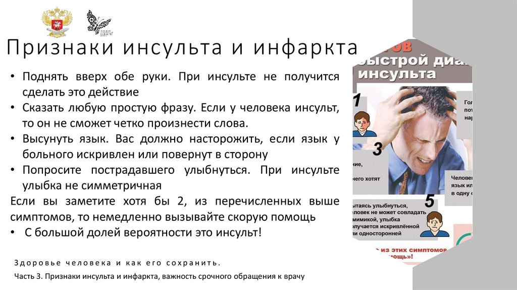 образом жизни. Признаки инсульта и инфаркта,