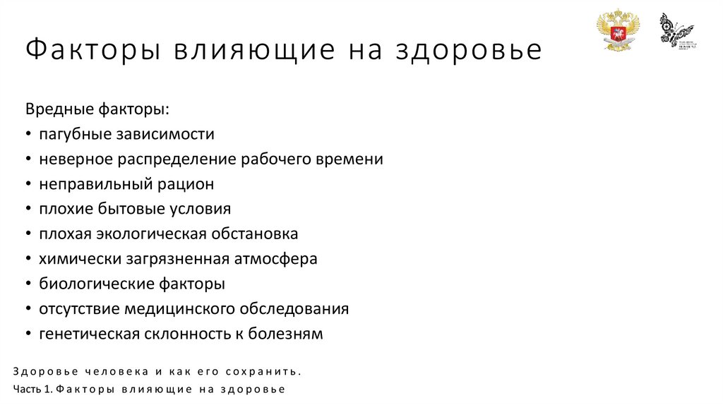 Факторы влияющие на здоровьеВредные факторы: