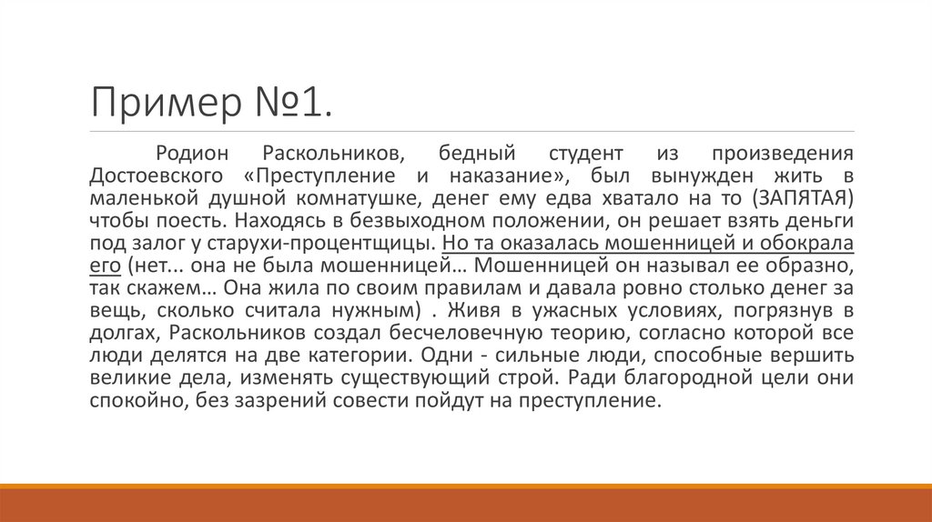 Пример №1.Родион Раскольников, бедный студент из произведения