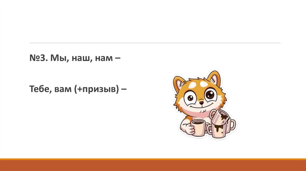 №3. Мы, наш, нам –Тебе, вам (+призыв) –
