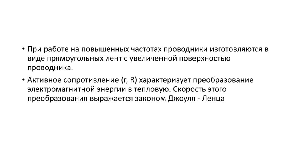 • При работе на повышенных частотах проводники изготовляются ввиде прямоугольных лент с увеличенной поверхностью