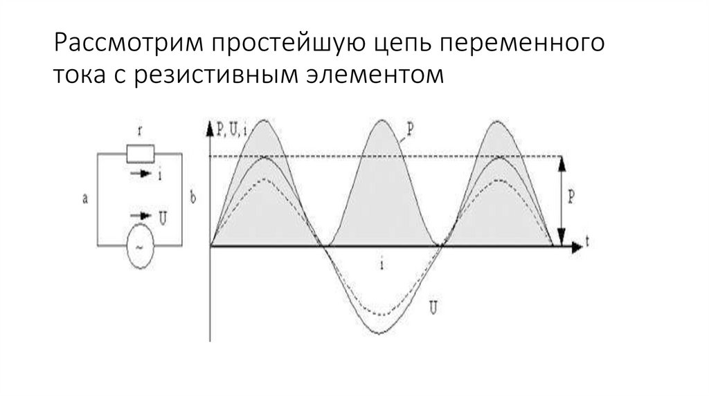 Рассмотрим простейшую цепь переменноготока с резистивным элементом