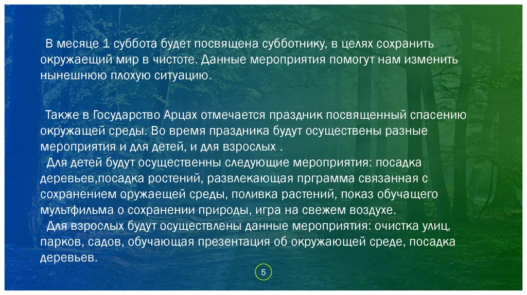окружащей среды. Во время праздника будут осуществены разные