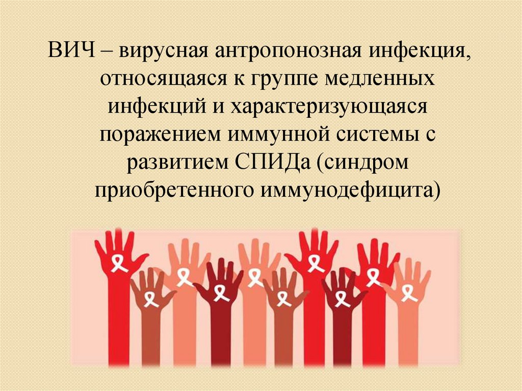 ВИЧ – вирусная антропонозная инфекция,относящаяся к группе медленных