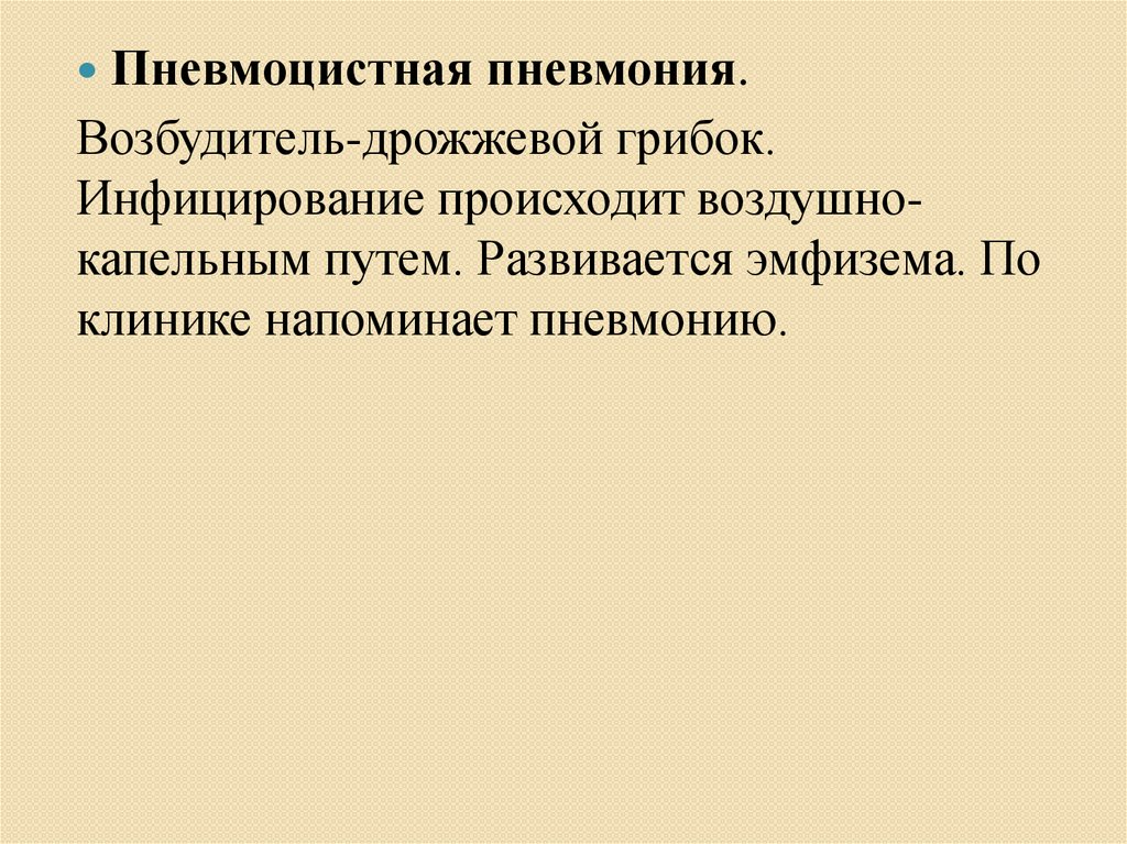 Пневмоцистная пневмония.Возбудитель-дрожжевой грибок.