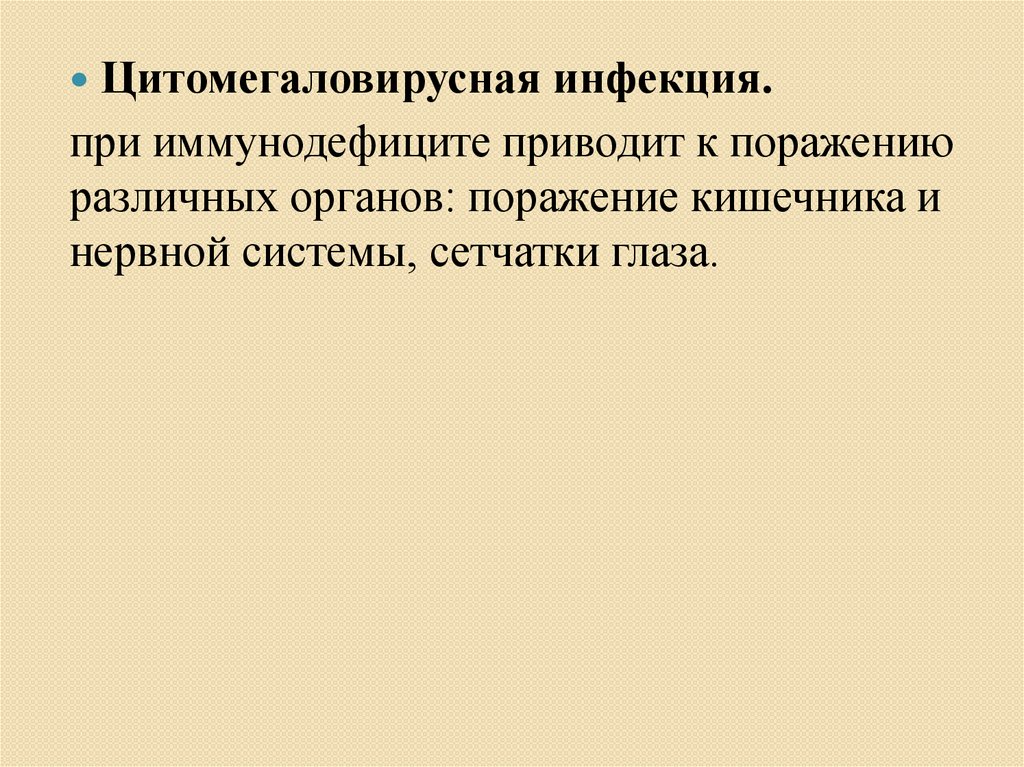 Цитомегаловирусная инфекция.при иммунодефиците приводит к поражению