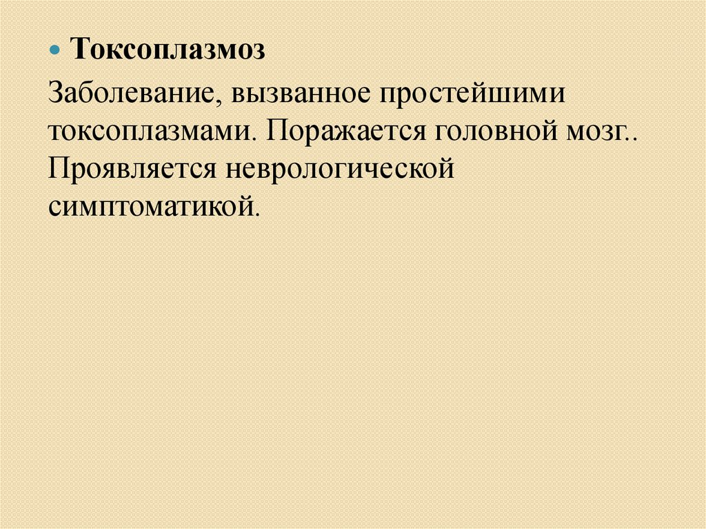 ТоксоплазмозЗаболевание, вызванное простейшими