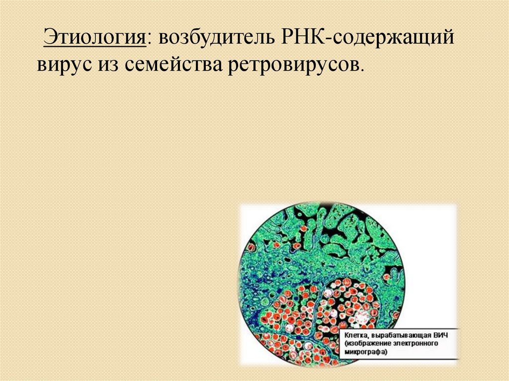 Этиология: возбудитель РНК-содержащийвирус из семейства ретровирусов.