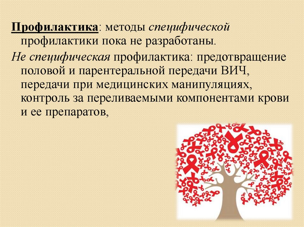 Профилактика: методы специфическойпрофилактики пока не разработаны.