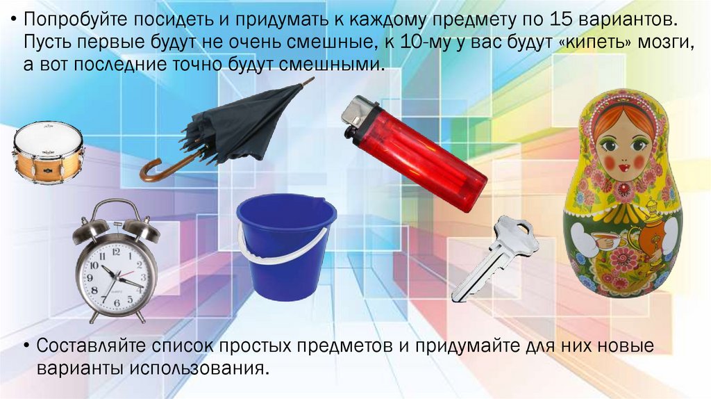 • Составляйте список простых предметов и придумайте для них новые